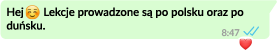 Jeżeli poszukujesz kogoś, kto naucza język duński online w miłej i przyjemnej atmosferze, zapraszam do mnie na lekcje. Nauczam języka duńskiego od podstawowego do zaawansowanego poziomu. Mogę przygotować Cię do egzaminów językowych w Danii lub po prostu poprowadzić lekcje duńskiego według Twoich potrzeb. Jestem osobą komunikatywną i język duński to moja pasja. Moje umiejętności językowe doskonaliłam i szlifowałam przez wiele lat, zdobywając wykształcenie w Danii.