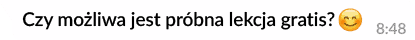 Lekcje prowadzone są na platformie internetowej. Godzina zajęć trwa 60 minut. Po wykupieniu kursu oraz po pierwszym spotkaniu, zostaną przesłane materiały, nad którymi będziemy wspólnie pracować. Dodatkowo po każdej lekcji uczeń otrzyma również notatki, które są zapisywane w trakcie wspólnej nauki.